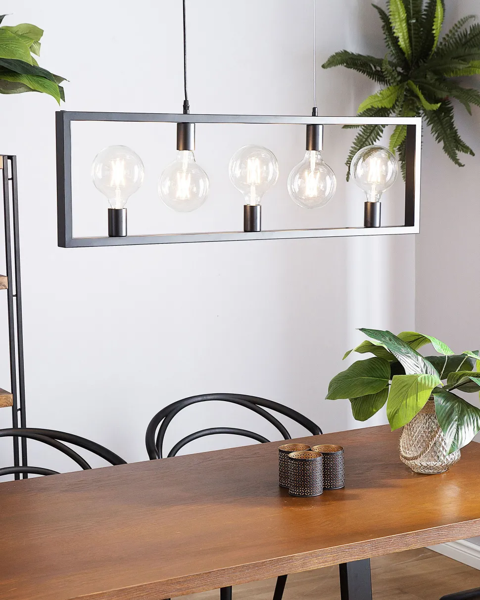 Candeeiro Suspenso Para 5 Lampadas Em Metal Preto Bayas