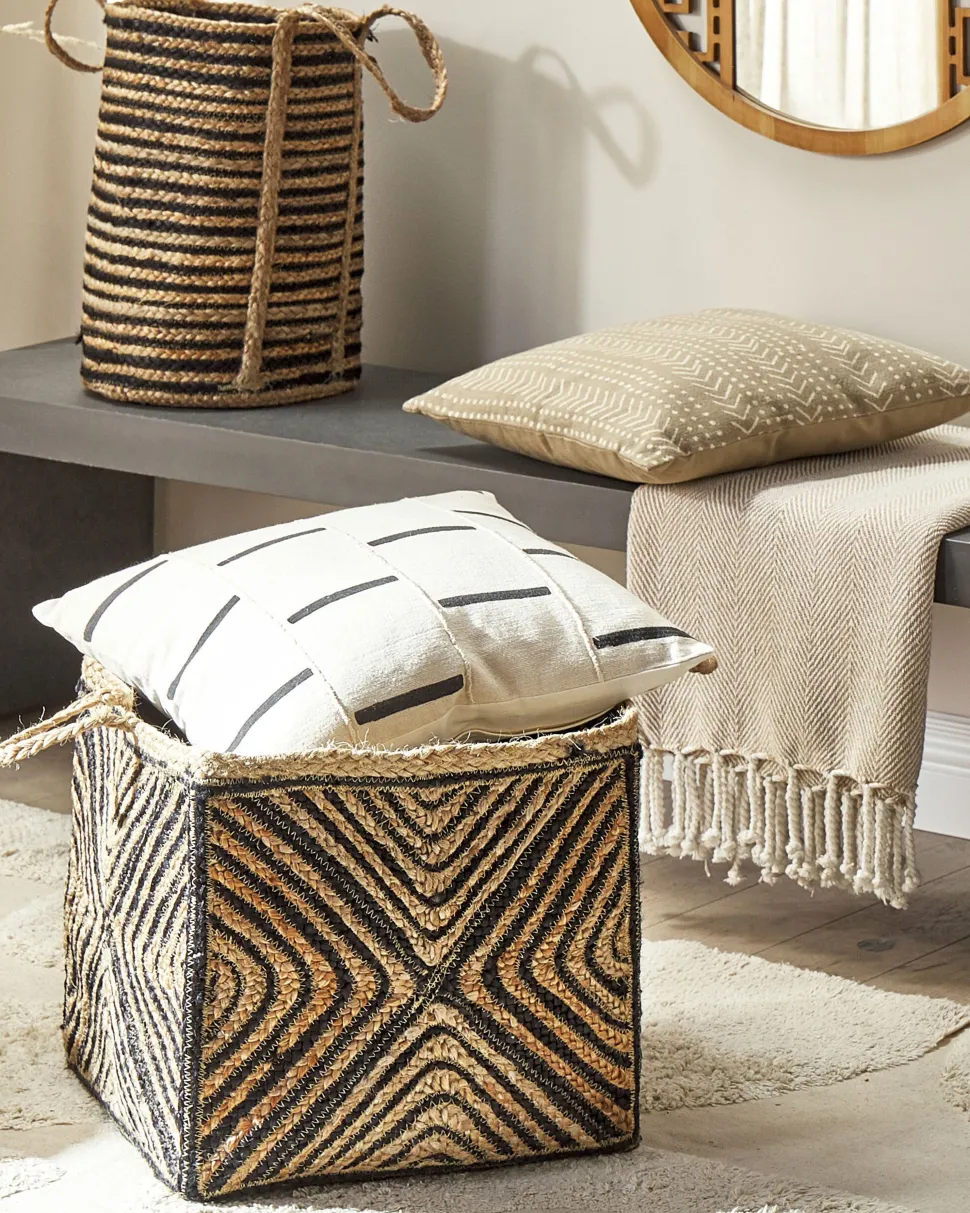 Cesto Em Juta Natural Creme E Preta Kolhapur