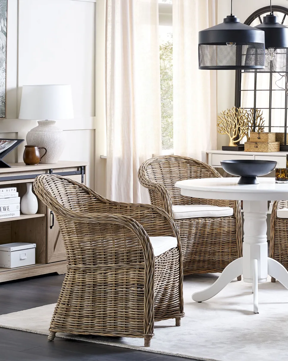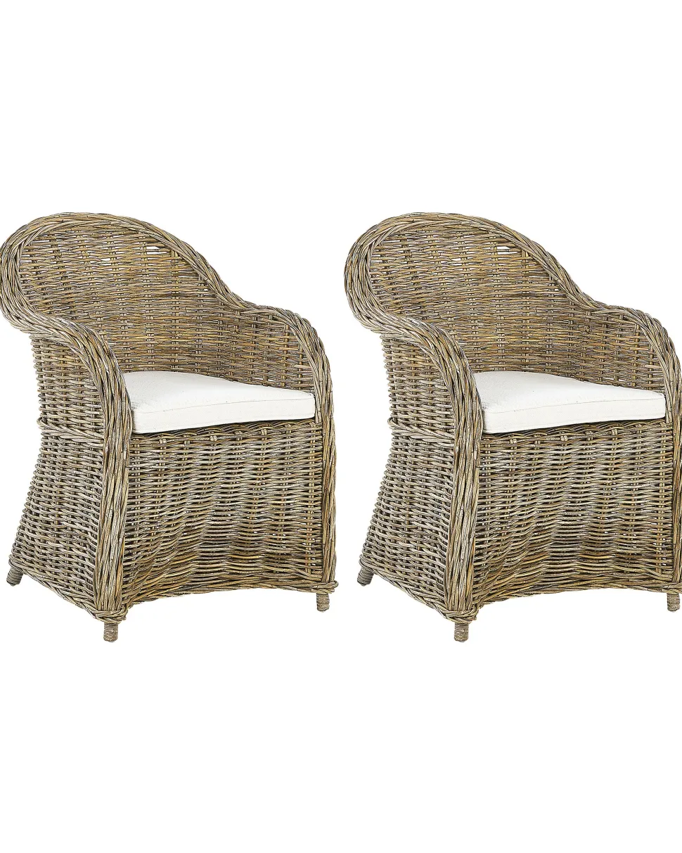 Conjunto De 2 Cadeiras De Jardim Em Rattan Cor Natural Susua
