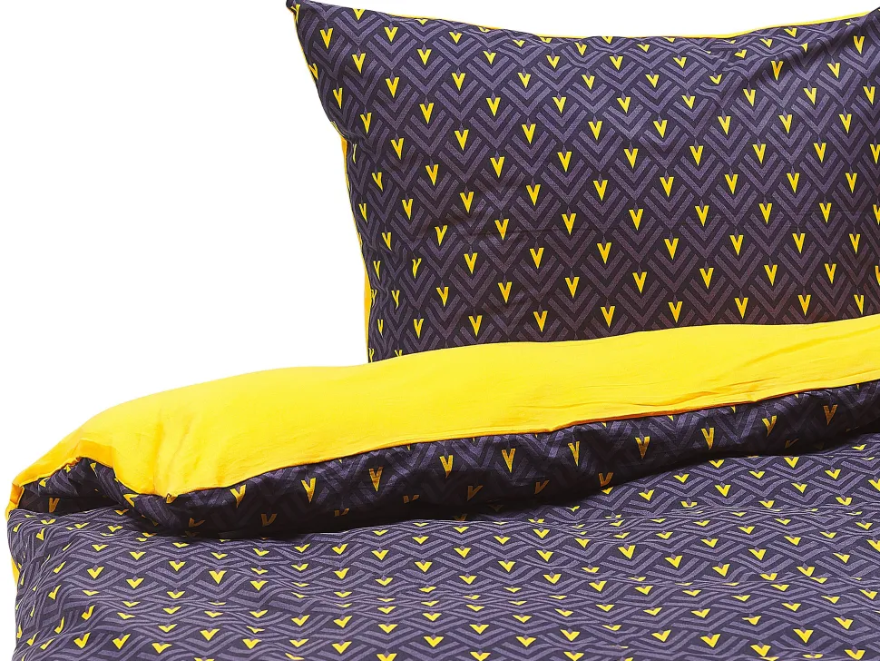 Conjunto De Capa De Edredao Em Algodao Acetinado Azul Escuro E Amarelo 135 X 200 Cm Wallingford
