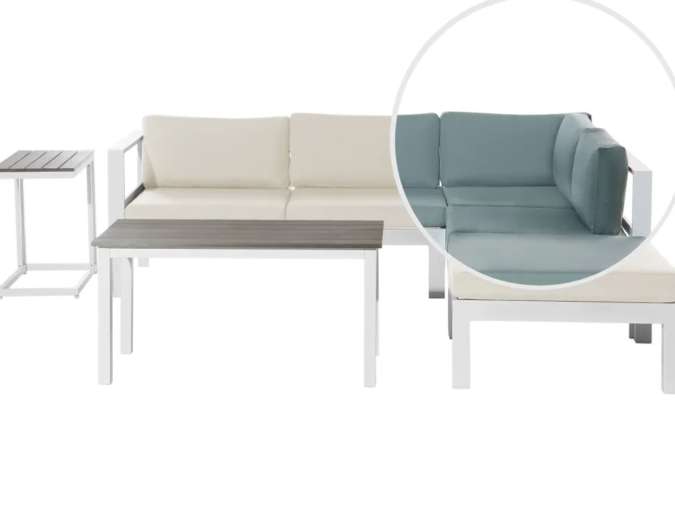 Be the first to review “Conjunto De Jardim 5 Lugares Em Aluminio Branco E Almofadas Verdes/Creme A Esquerda Messina” Cancelar resposta