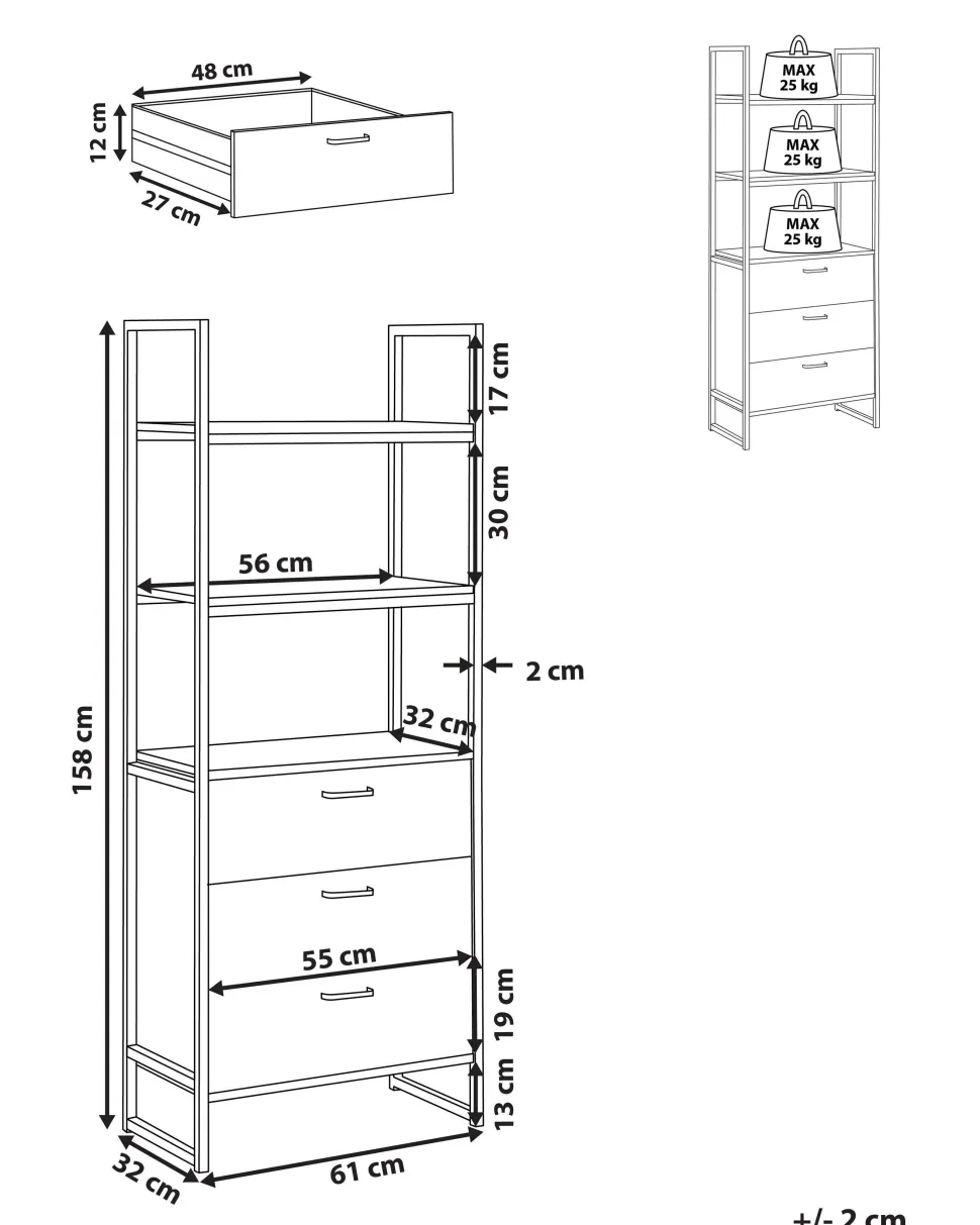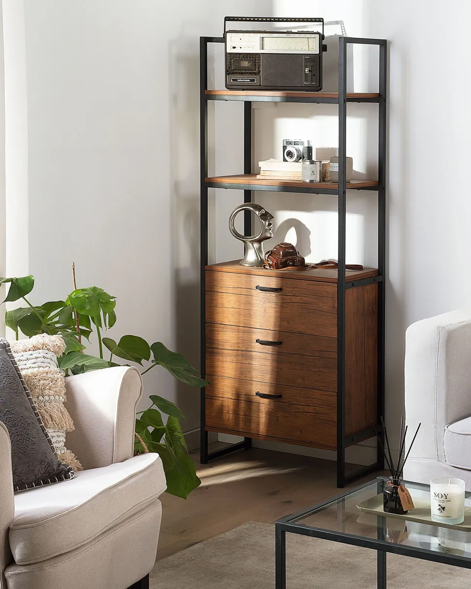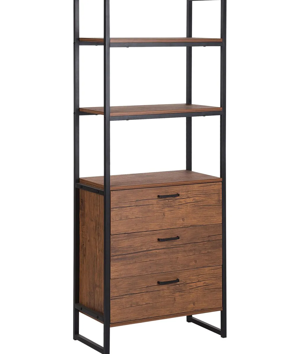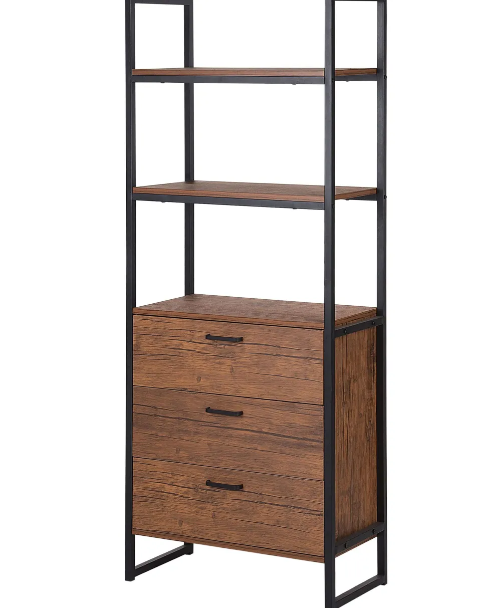 Estante Com 3 Gavetas E 2 Prateleiras Castanha E Preta Tifton
