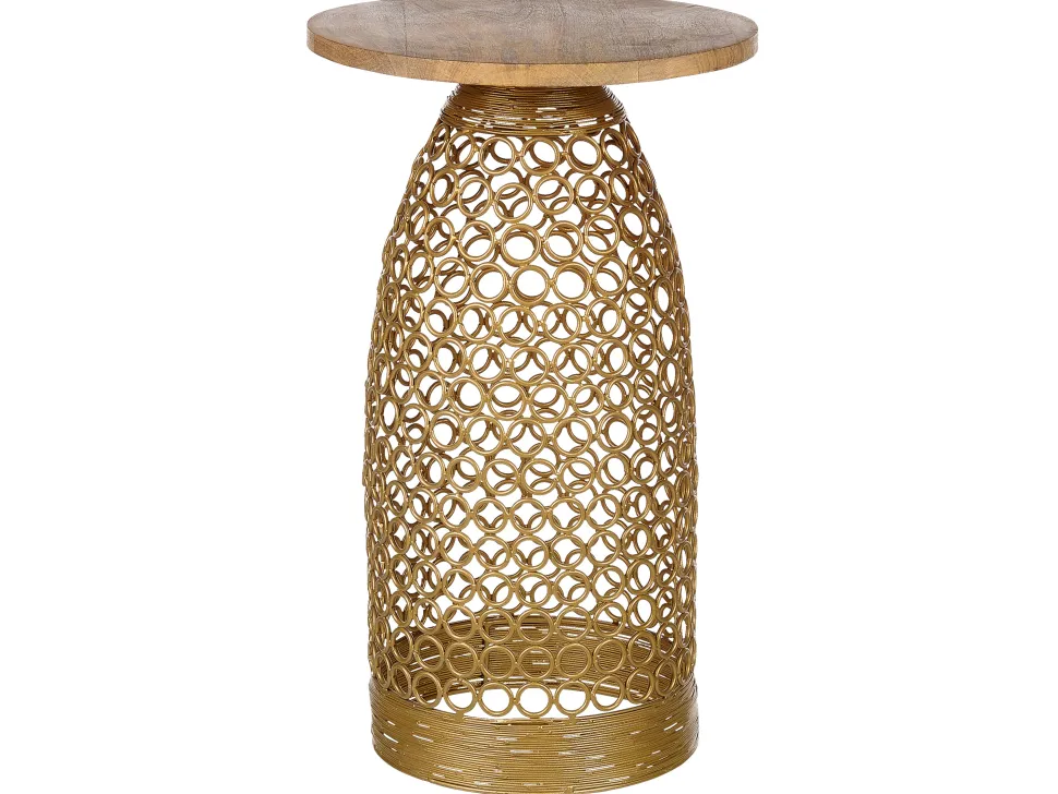 Mesa De Apoio Em Madeira Clara De Mango E Dourada Waihi