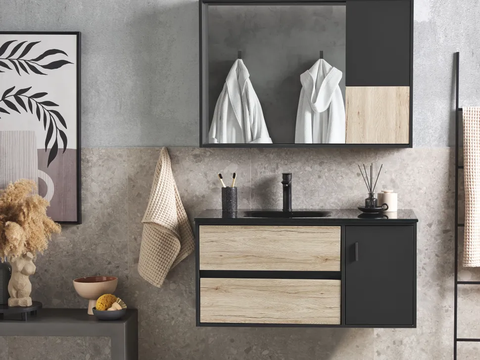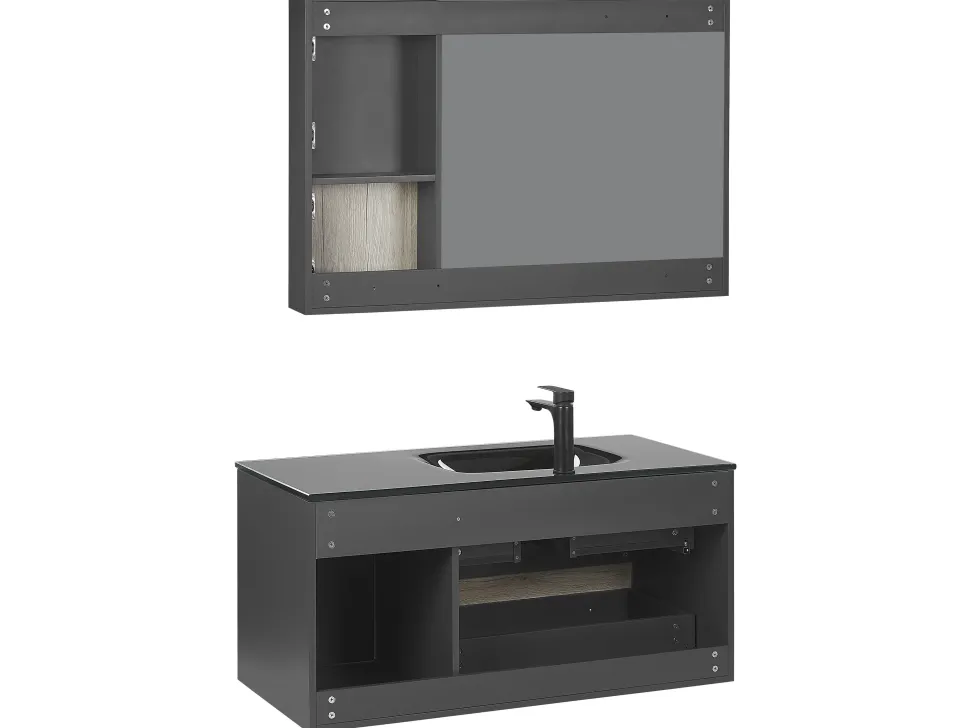 Be the first to review “Movel De Casa De Banho E Espelho Castanho Claro E Preto 100 Cm Teruel” Cancelar resposta