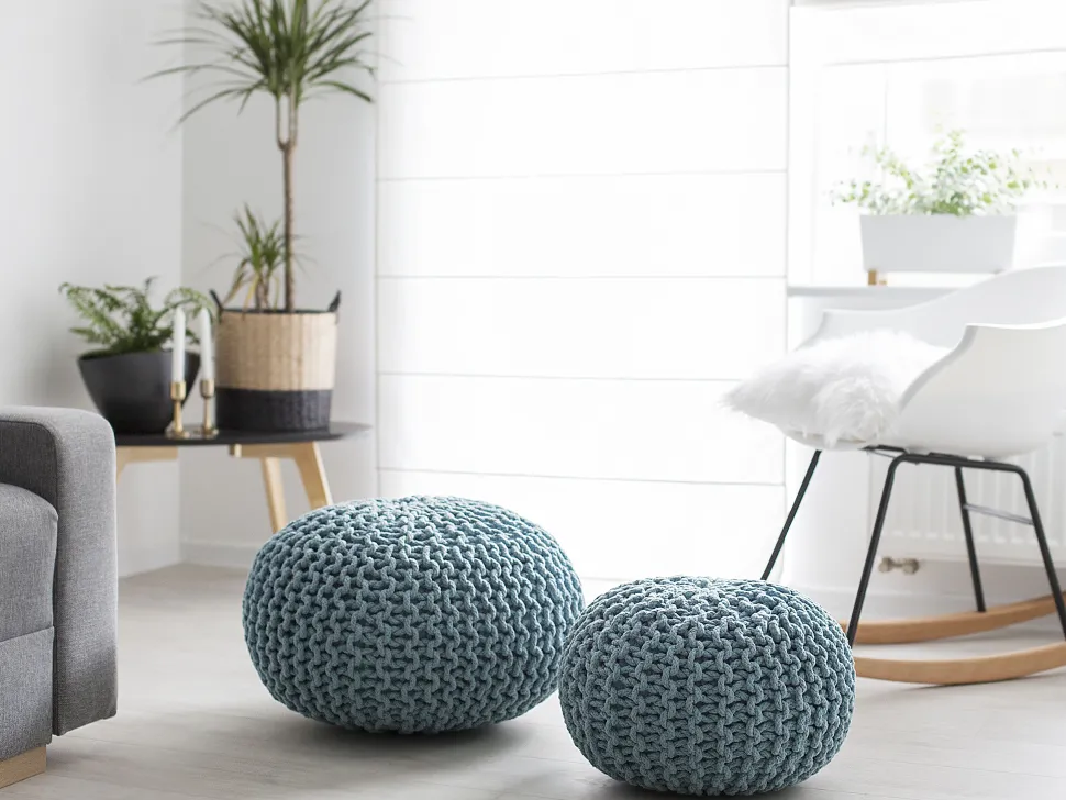 Pufe Redondo Em Tricot Azul Claro 50 X 35 Cm Conrad