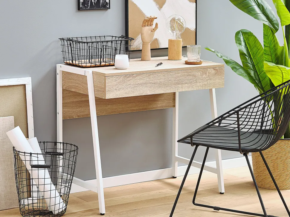 Secretaria Em Branco E Castanho Claro Com 1 Gaveta 84 X 48 Cm Carter