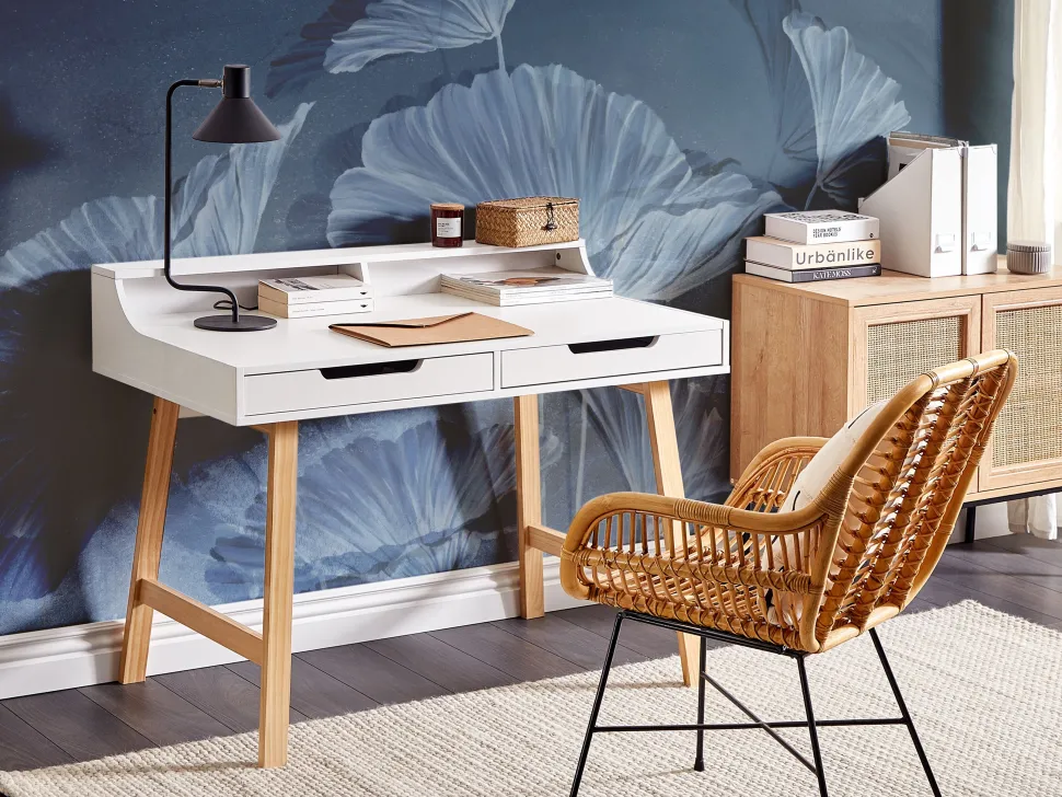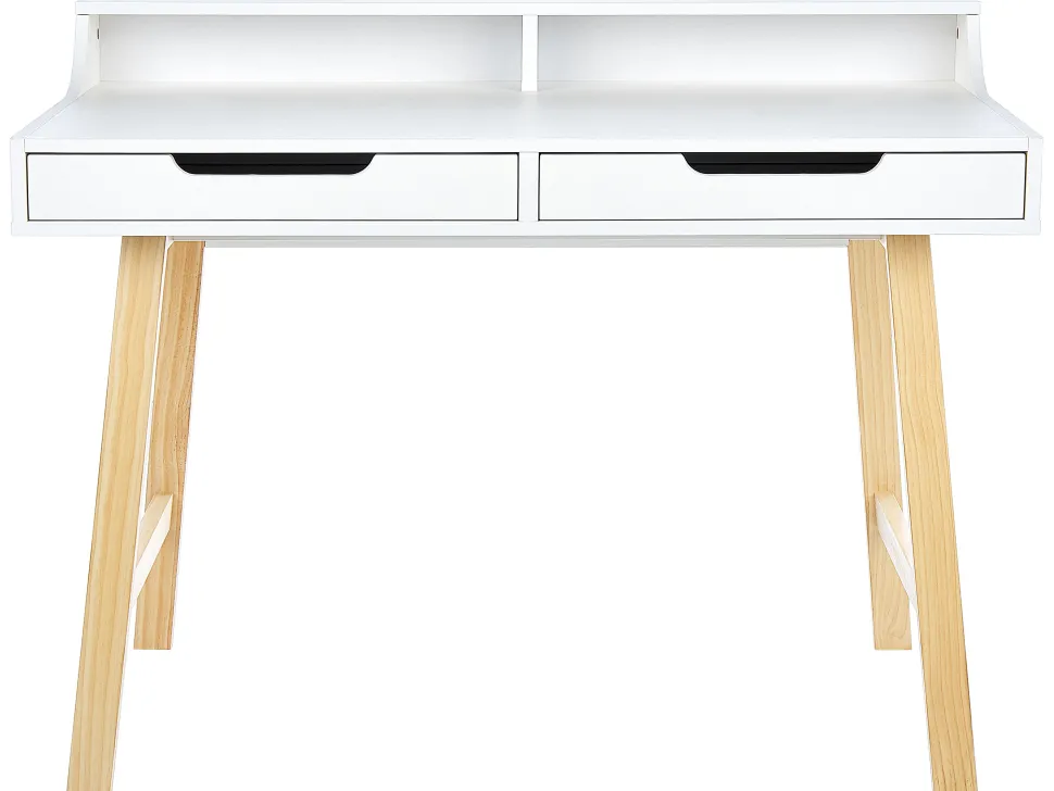Secretaria Em Madeira Clara E Branca Com 2 Gavetas 110 X 58 Cm Barie
