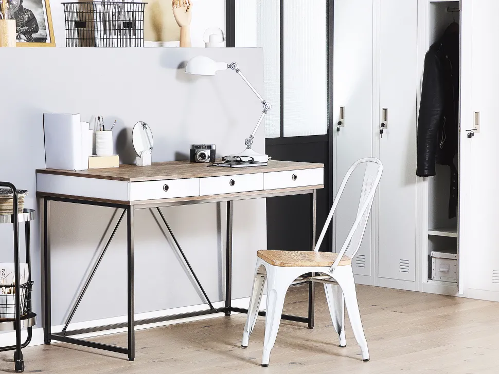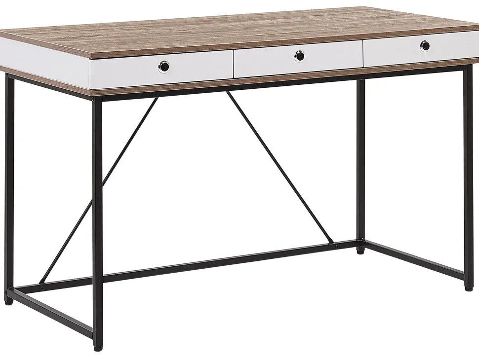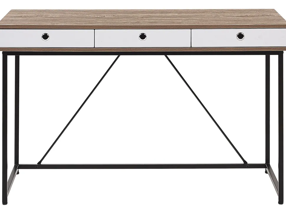 Secretaria Em Madeira Clara E Preto Com 3 Gavetas 120 X 60 Cm Hinton