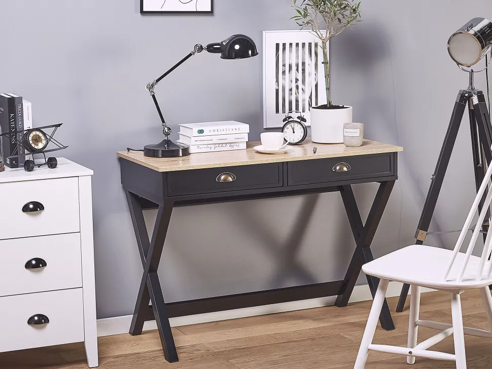 Secretaria Preta E Castanha Clara Com 2 Gavetas 103 X 50 Cm Ekart