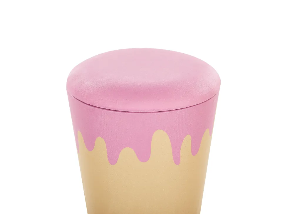 Tamborete Creme E Rosa Com Arrumação Mousee