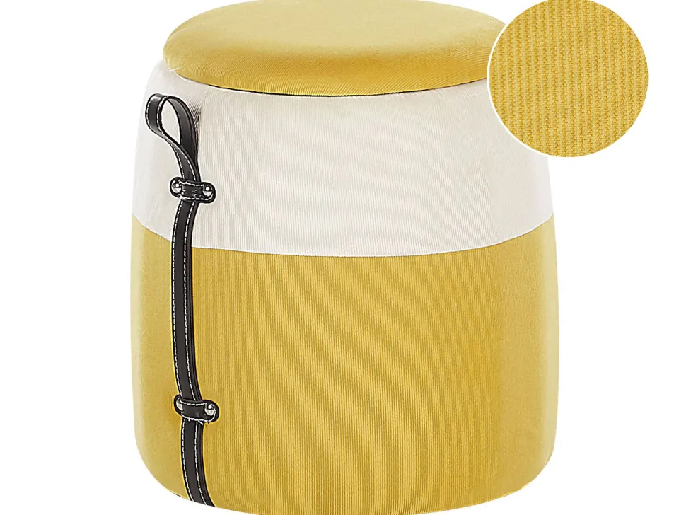 Tamborete Em Bombazine Amarela Com Arrumação Ruby