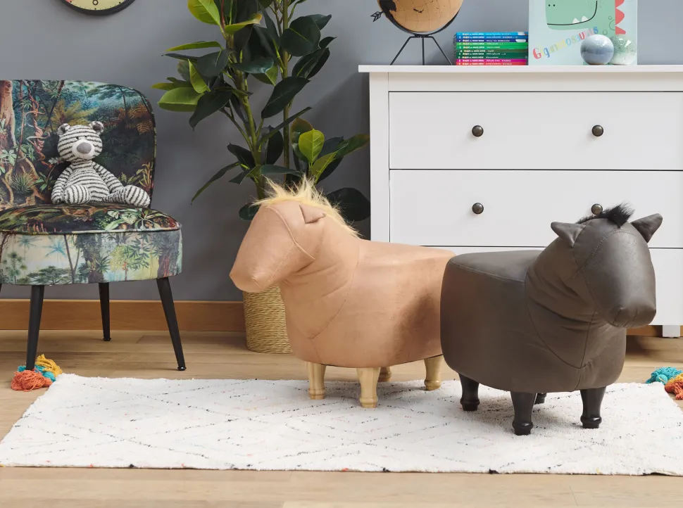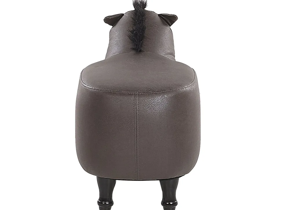 Tamborete Em Pele Sintetica Castanho Escuro Horse