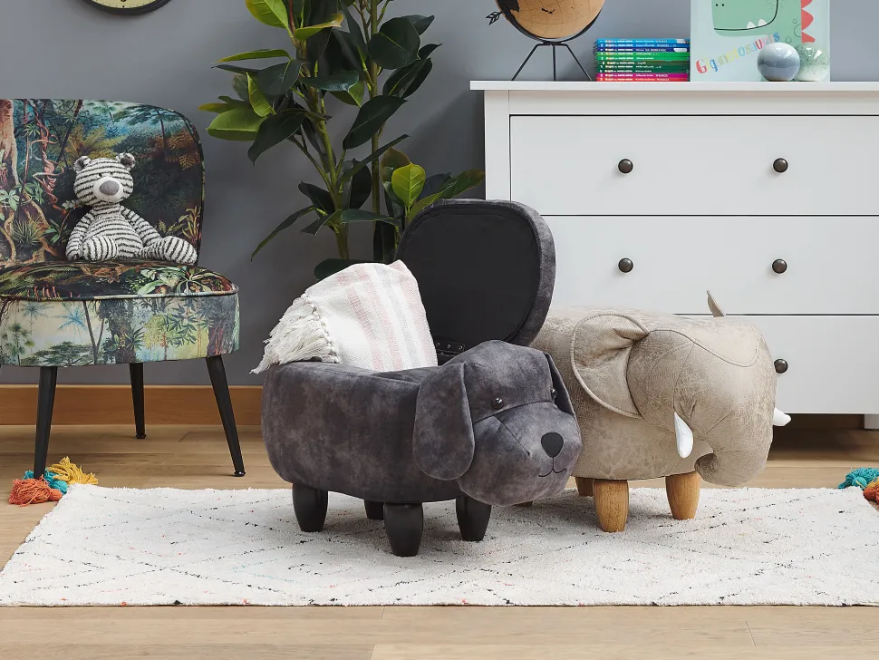 Tamborete Em Tecido Cinzento Escuro Com Arrumação Doggy
