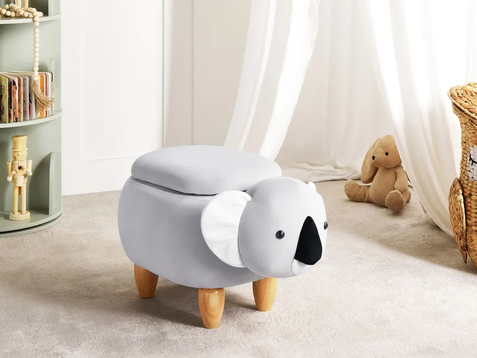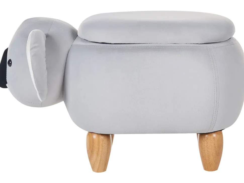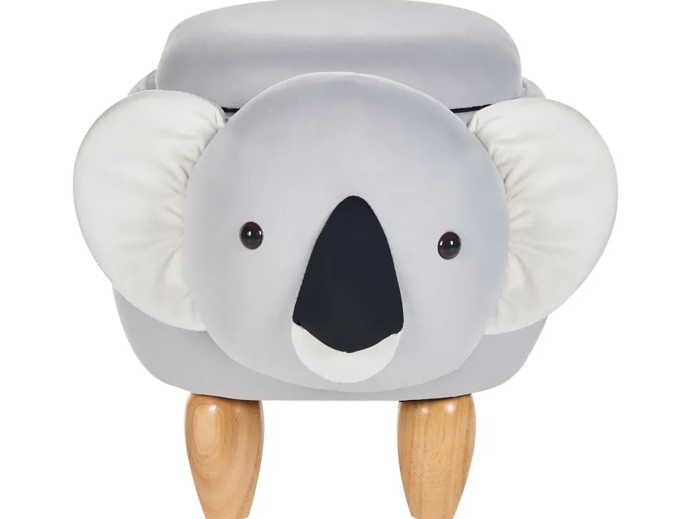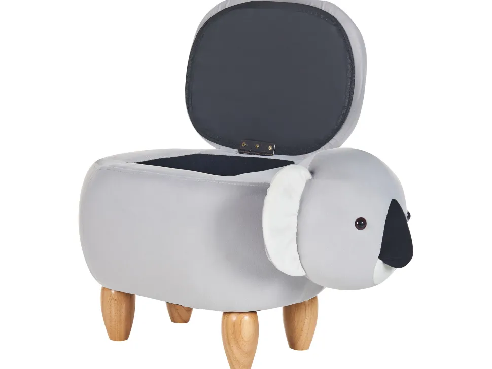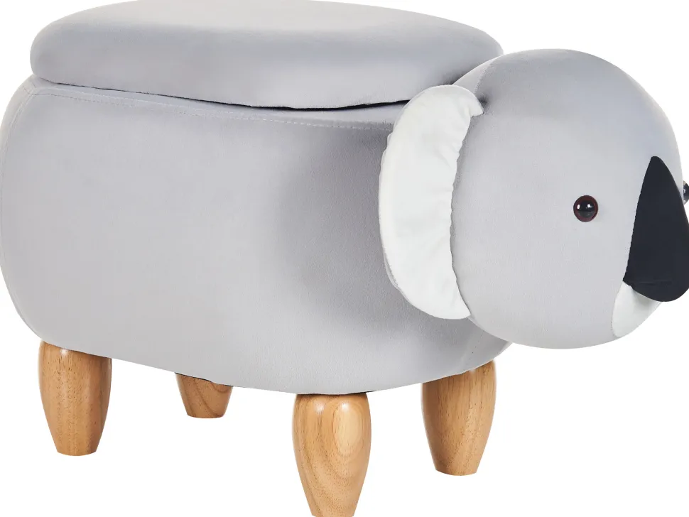 Tamborete Em Veludo Cinzento Com Arrumação Coala