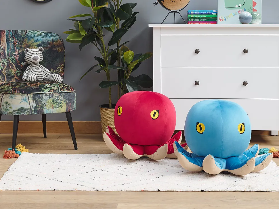Tamborete Em Veludo Vermelho Octopus