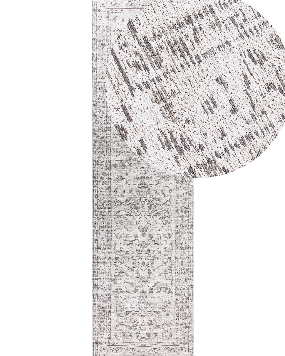 Tapete Em Algodao Creme E Cinzento Claro 80 X 300 Cm Sellik