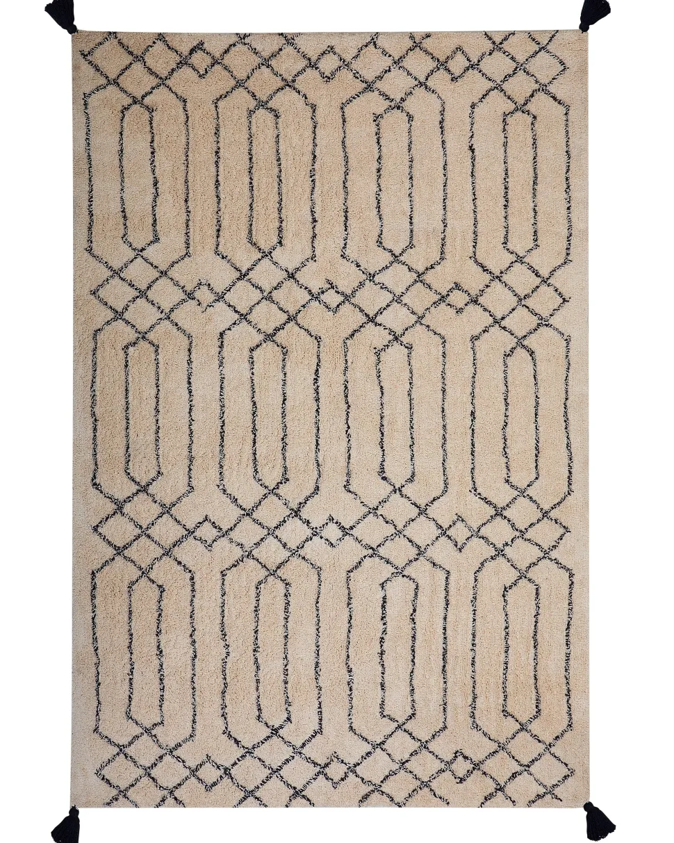 Tapete Em Algodao Creme E Preto 160 X 230 Cm Maltepe