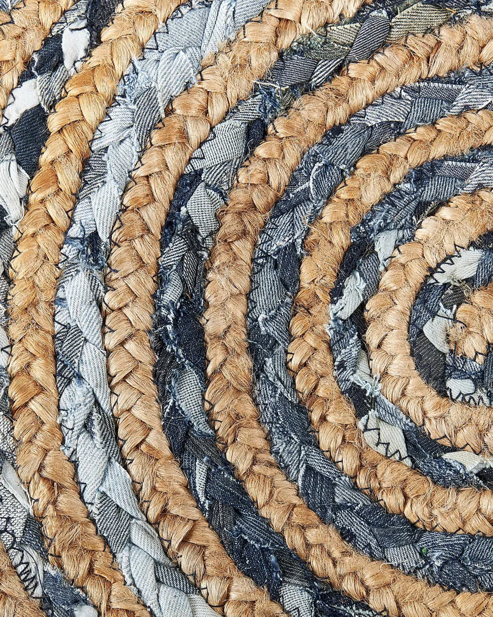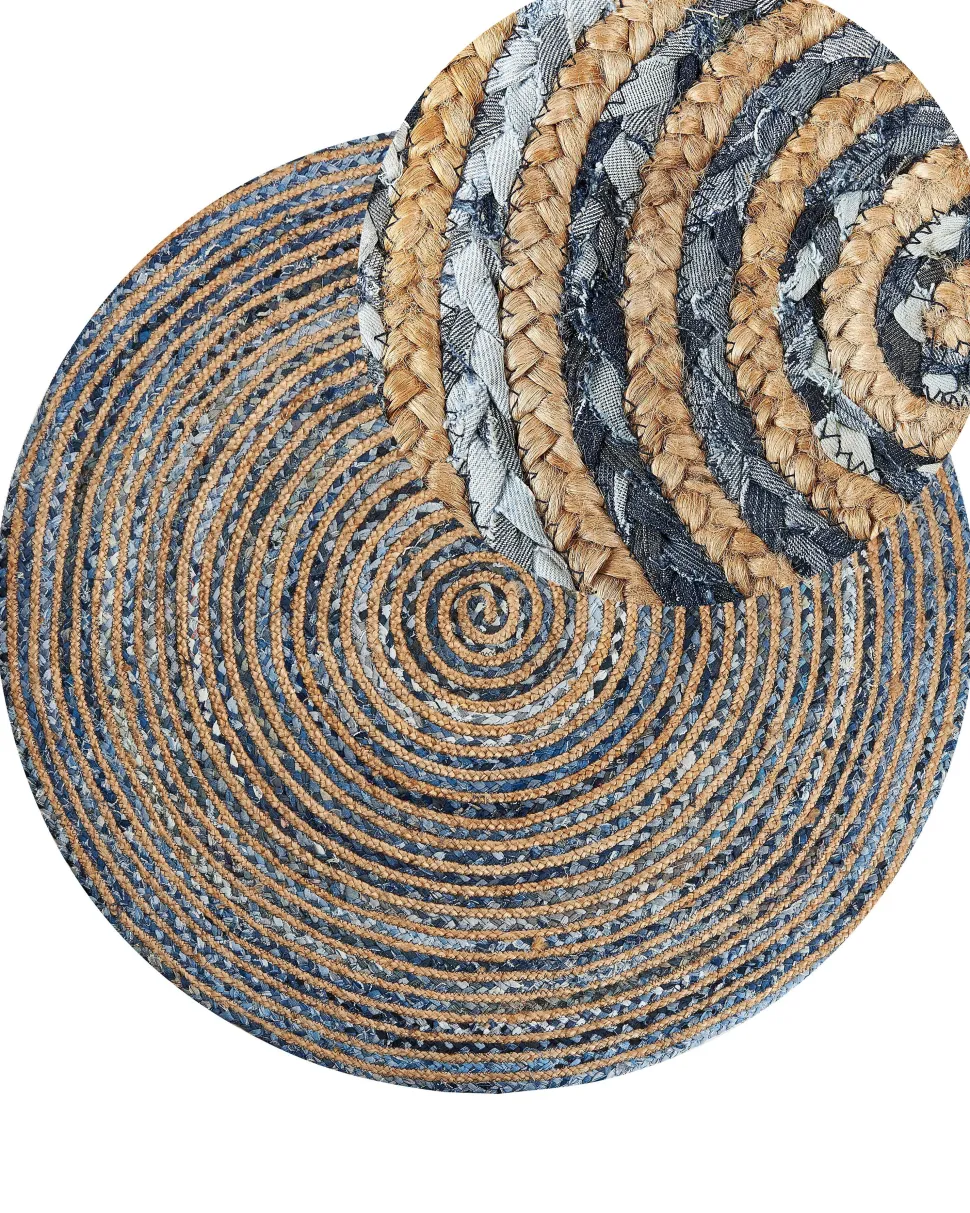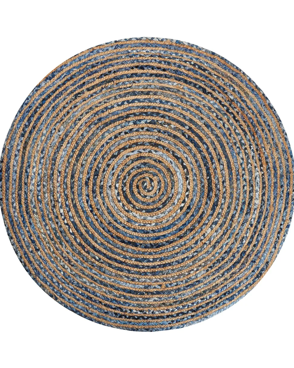 Tapete Redondo Em Algodao Azul E Creme 140 Cm Leventler