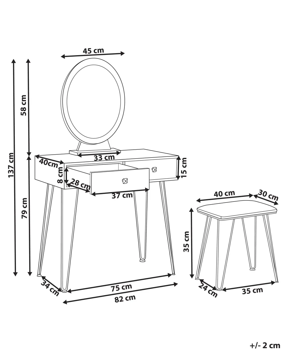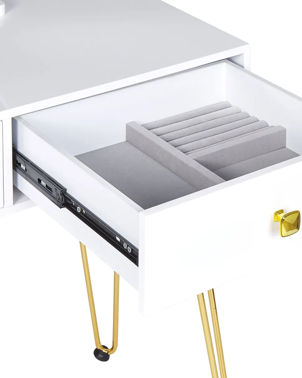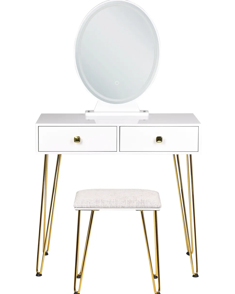 Toucador Com 2 Gavetas E Banco Branco E Dourado Caen