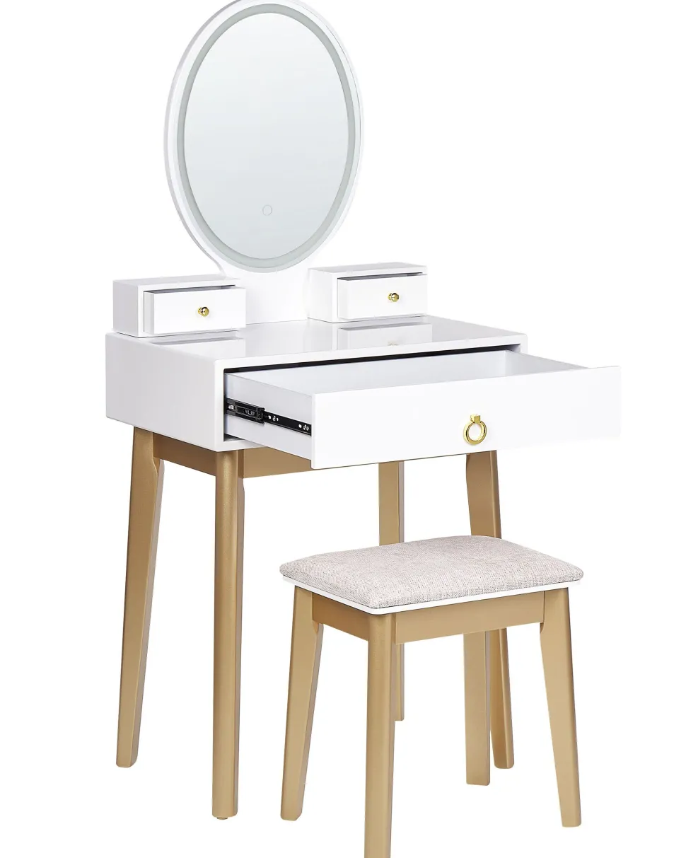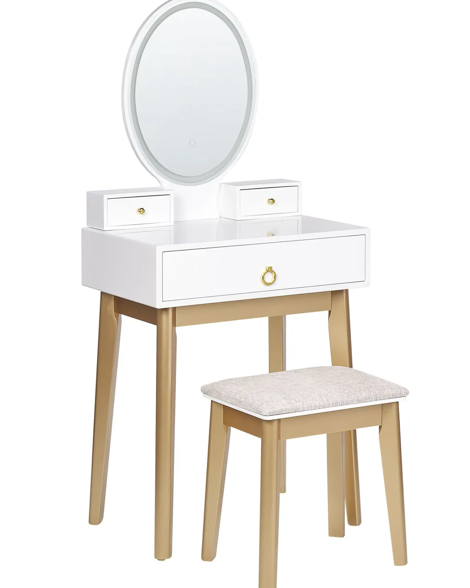 Be the first to review “Toucador Com 3 Gavetas E Banco Branco E Dourado Rosey” Cancelar resposta