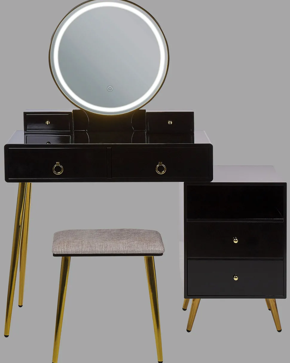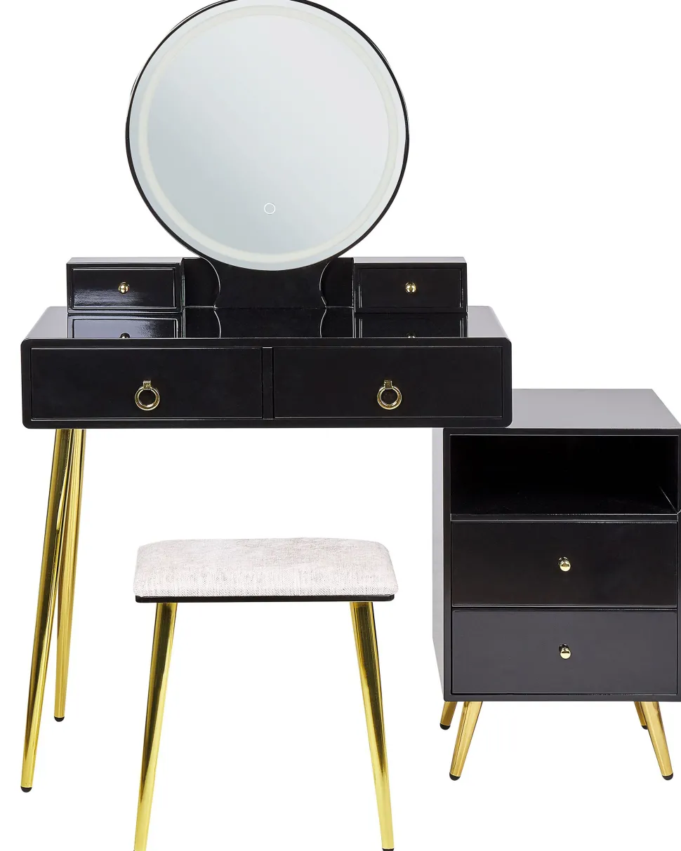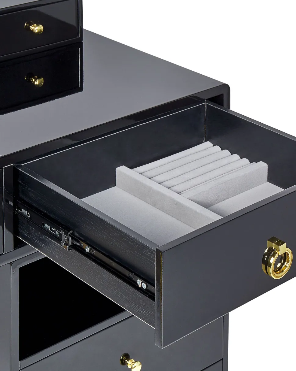 Be the first to review “Toucador Com 6 Gavetas E Banco Preto E Dourado Yves” Cancelar resposta